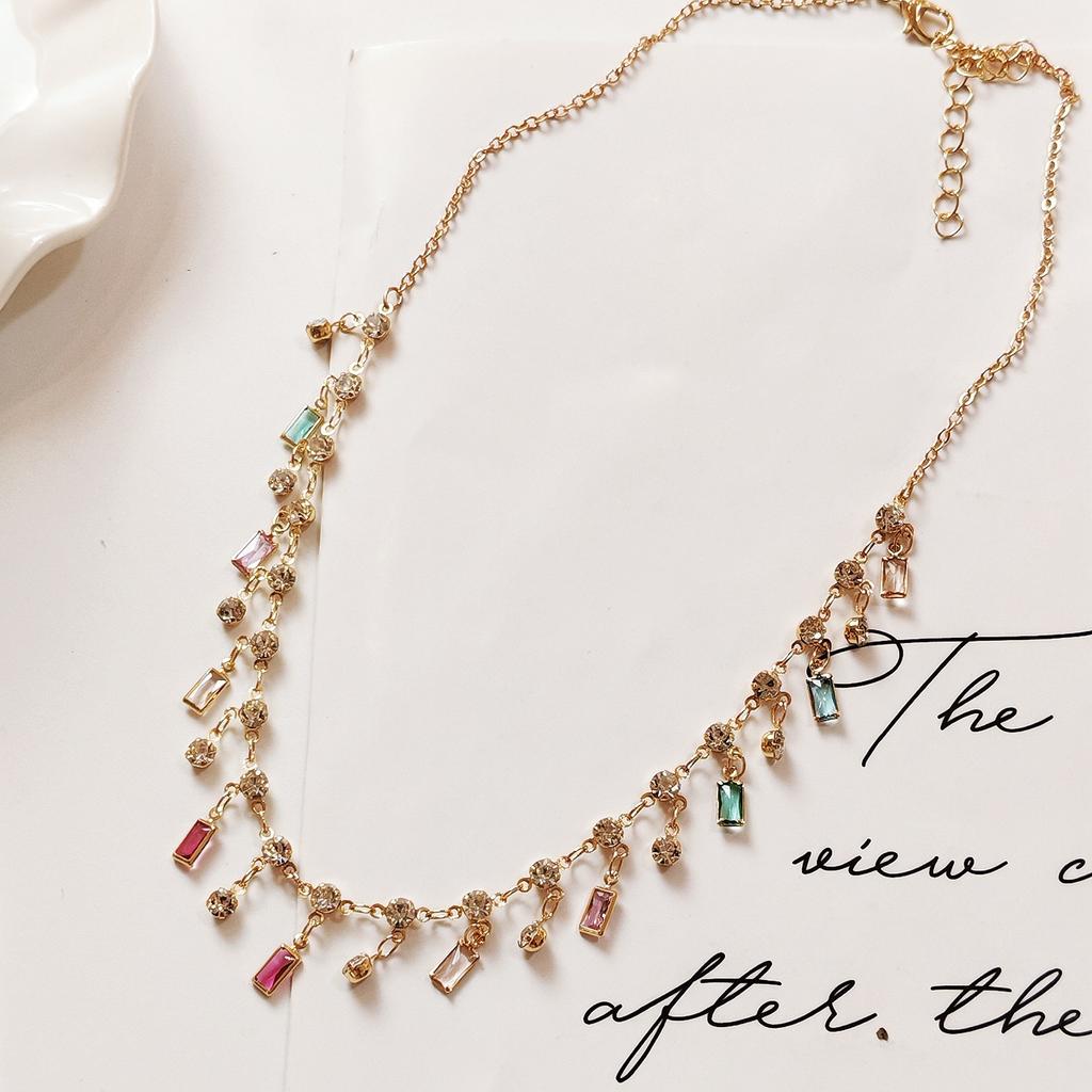 BLINGBAY Women's Chain Necklace New Summer Fashion Light Luxury Color Tassel Zircon Clavicle Necklace Girl Birthday Gift
