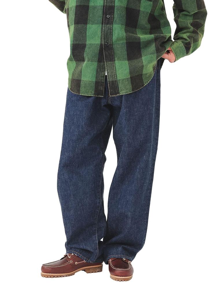 Classic 5-pocket denim pants made of processed cotton denim. A piece that follows the details of vintage denim, such as the color scheme of the front and back threads of the stitching, and the hidden hook on the back patch pocket.