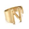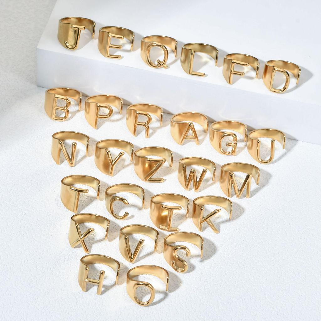 18K Gold Stainless Steel Letter Ring – Fashionable Open European & American Style, Women's Adjustable Titanium Steel Ring