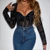 European & American Women's High-End Flocking Print Slim Button-Up Long Sleeved Jumpsuit 60704