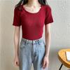New Summer Round Neck Knitted Short Sleeve T-shirt Women Slim Fit Elastic Solid Casual Women's T Shirts Tops Fashion Elegant Simple Female Tee 26319