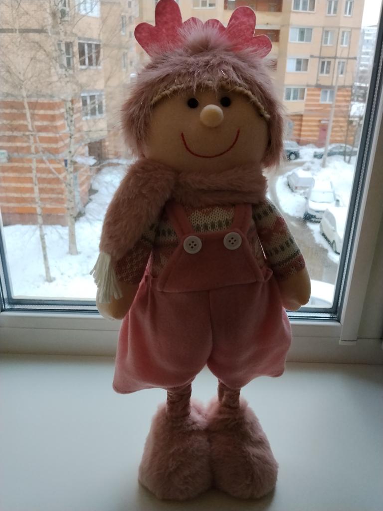 Pink Deer Antler Christmas Fabric Doll - Standing Ornament for Boy or Girl