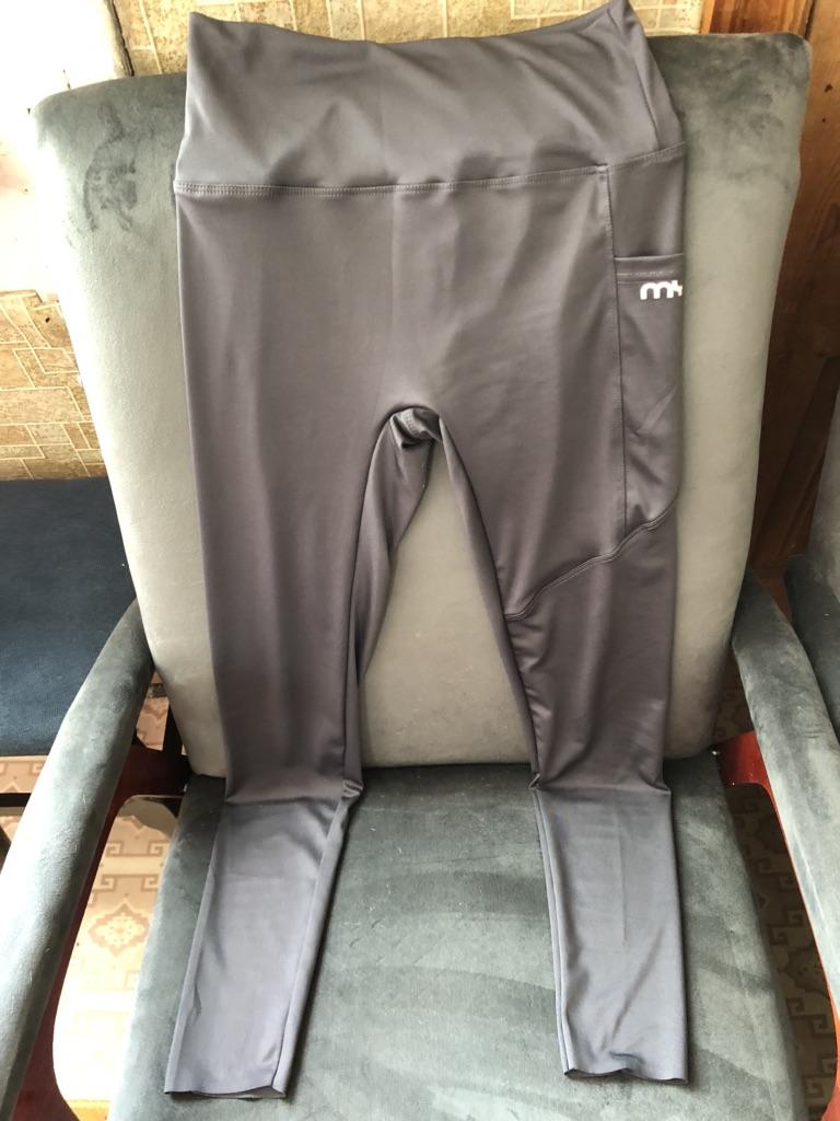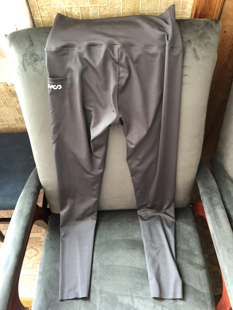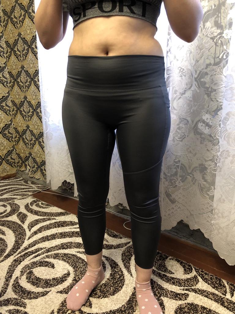 The leggings fit size 46. The side pocket allows you to carry a phone. The bottom edge is simply cut off, not processed in any way. The elastic on the waist does not hold, when bending or squatting they slip terribly. It is uncomfortable to wear because of this. For such a price it was stupid to expect more.