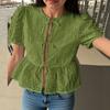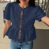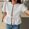 ZANZEA Women Summer Round Neck Bubble Short Sleeve Lace Blouses