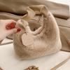 Women Plush Handbags Ruched Handle Small Lady Shoulder Crossbody Bag Casual Tote Half-Moon Hobos Winter Bags