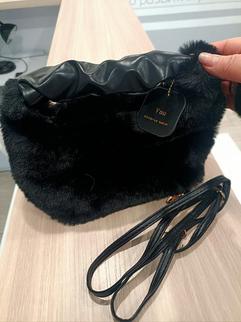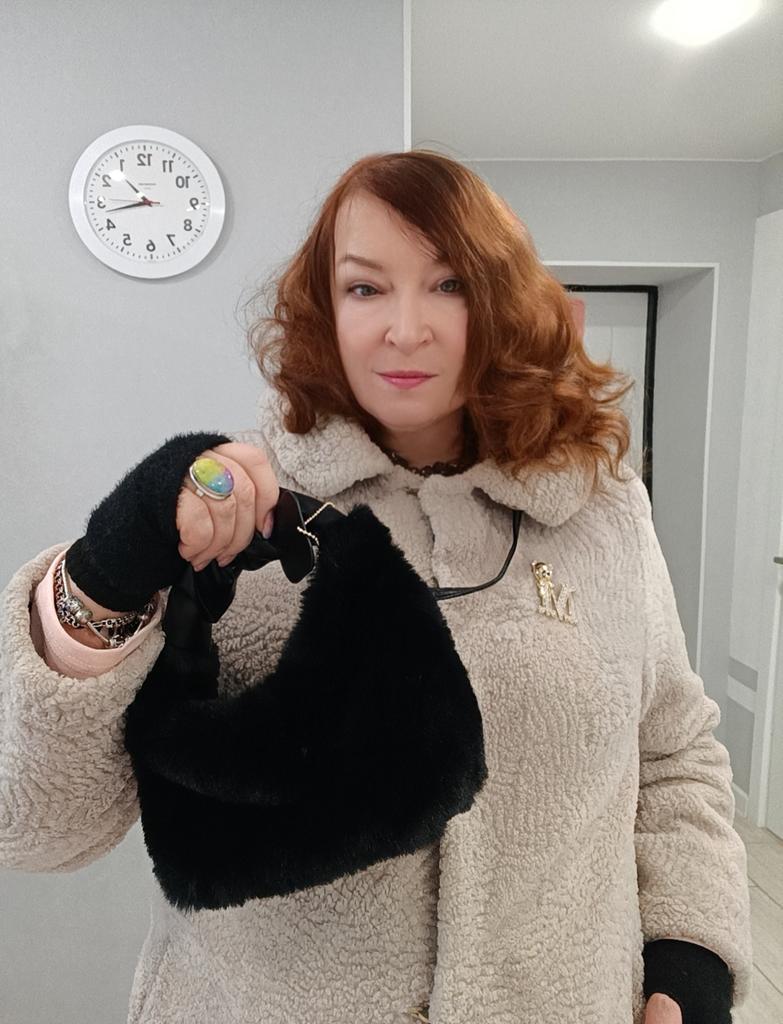 Furry little handbag. I'm already ordering the second one like this, the first one, in khaki, I've had for two seasons already. What can I say... Pretty, comfortable, soft. Sometimes I catch myself stroking it like a kitten! Although the fur is very similar to mink. There is one compartment inside. I can fit a small wallet, phone, keys, and a folded shopper.. It's convenient that there's both a short handle and a long strap. The strap, by the way, is detachable. It's convenient to hang it over your shoulder and neck. It's both beautiful, the bag is at hand, and your hands are free.. There is a round pendant with a golden inscription. The little bag looks very good, I would say expensive. And the price is purely symbolic. I recommend taking a closer look at this wonderful little bag.