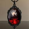 Gothic Vintage Red Black Quartz Bat Cameo Pendant Necklace For Women Accessories Fashion Jewelry