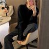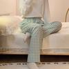Korean Style Women's Imitation Cotton Pajama Set: Solid Color Long Sleeve Top & Plaid Trousers for Spring and Autumn