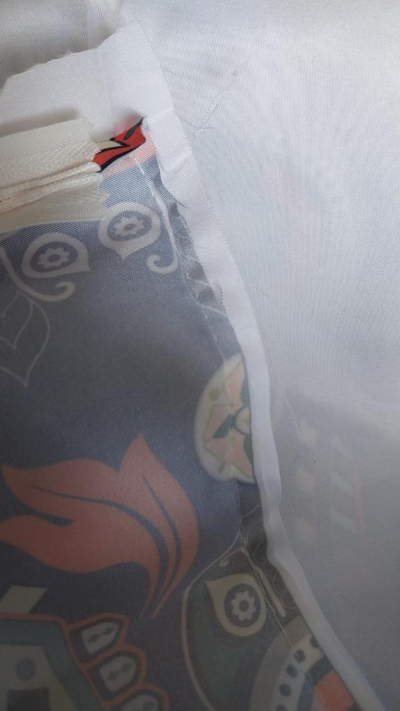 Not like in the photo, the background is lighter (blue), it looks much better in the photo. The edges are not finished, there is no overlock at all