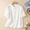Summer Women's Cotton Linen Shirt for Women Short Sleeved Blouse Jacquard Embroidered Lace Collar Shirt