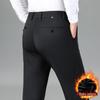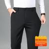 Men's Thickened Nylon Casual Pants - Milk Silk, High Elastic, Straight, Loose Business Trousers with Velvet Inside for Spring and Autumn.