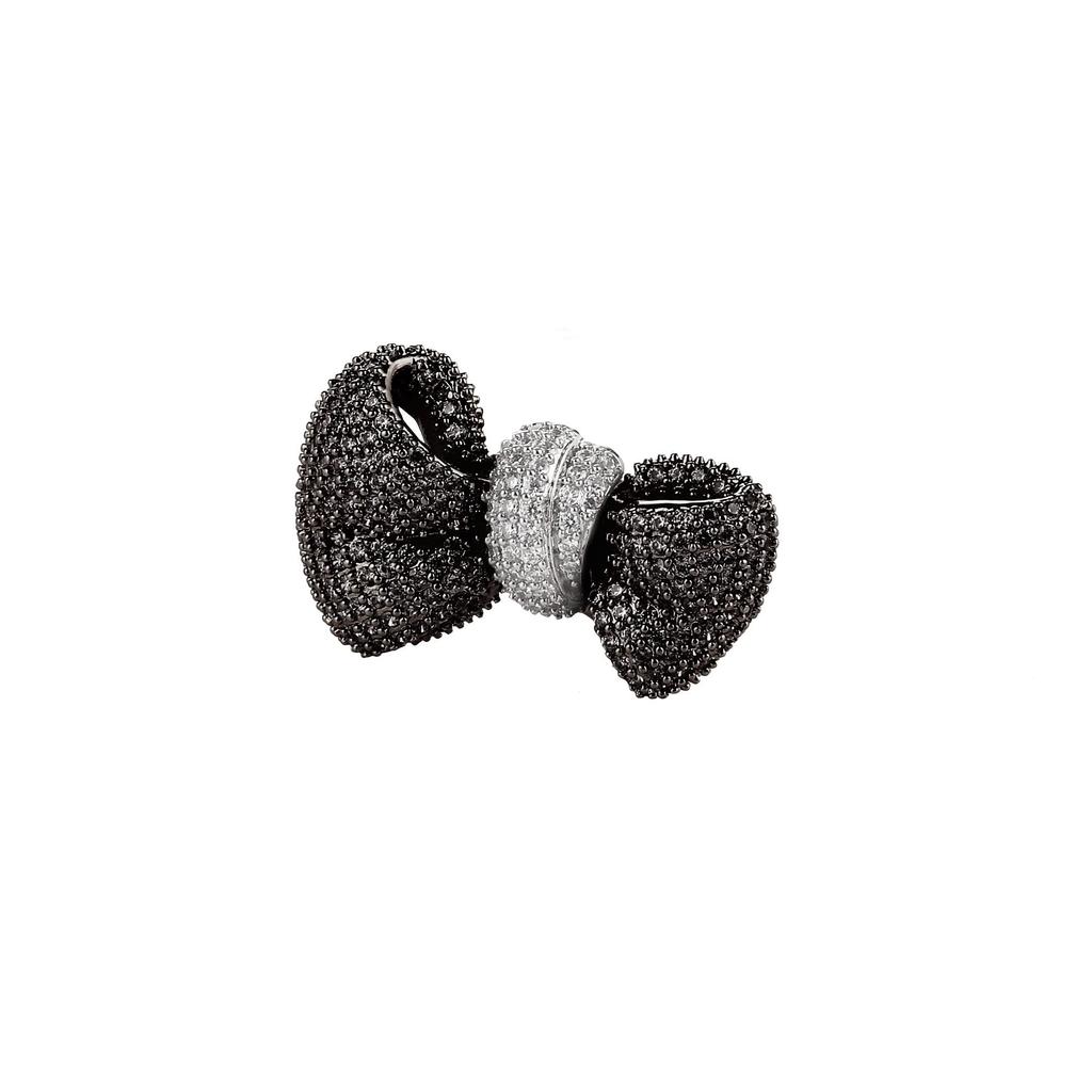 LAVINA Pave Cubic Zirconia Ribbon Exquisite Brooch Pin Bridal Jewelry Wedding Rhodium Plated Cubic Zirconia Women's Prom, Brass. ,