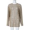 Sexy Perspective Knitted Hoodie Women's Solid Color Loose Round Neck Long Sleeved Top T-shirt Summer New Fashion