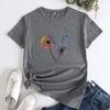 Summer Round Neck Colorful Dandelion Pattern Printed Top Fashionable Casual Short Sleeved Women's Pure Cotton T-shirts