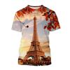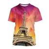 Paris Eiffel Tower 3D Print T-Shirts Streetwear Men Women Fashion Oversized O-Neck Short Sleeved T Shirt Tees Tops Clothing