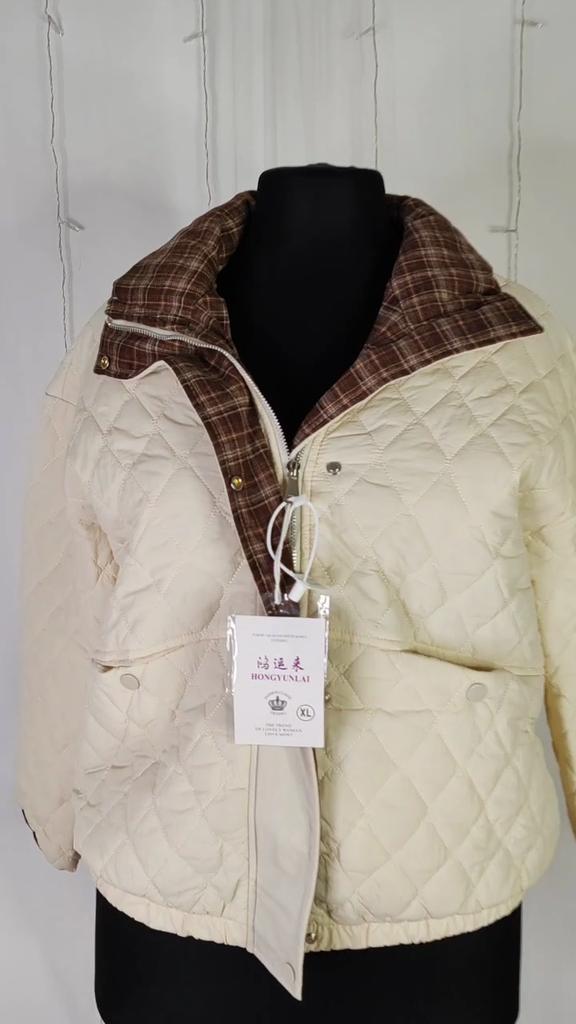 Fashionable Loose Fit Autumn Winter Stand Collar Diamond Grid Thin Cotton Coat, Middle-aged and Elderly Cotton Jacket
