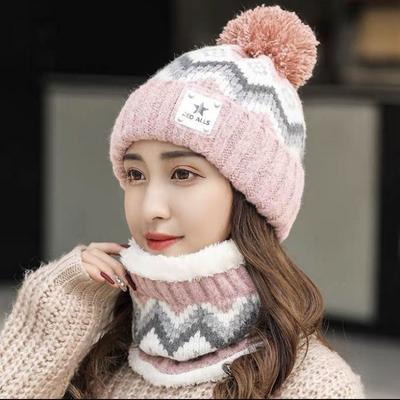 Plus Velvet Beanies Hat Windproof Hat Scarf Set Winter Knit Skull Cap Women