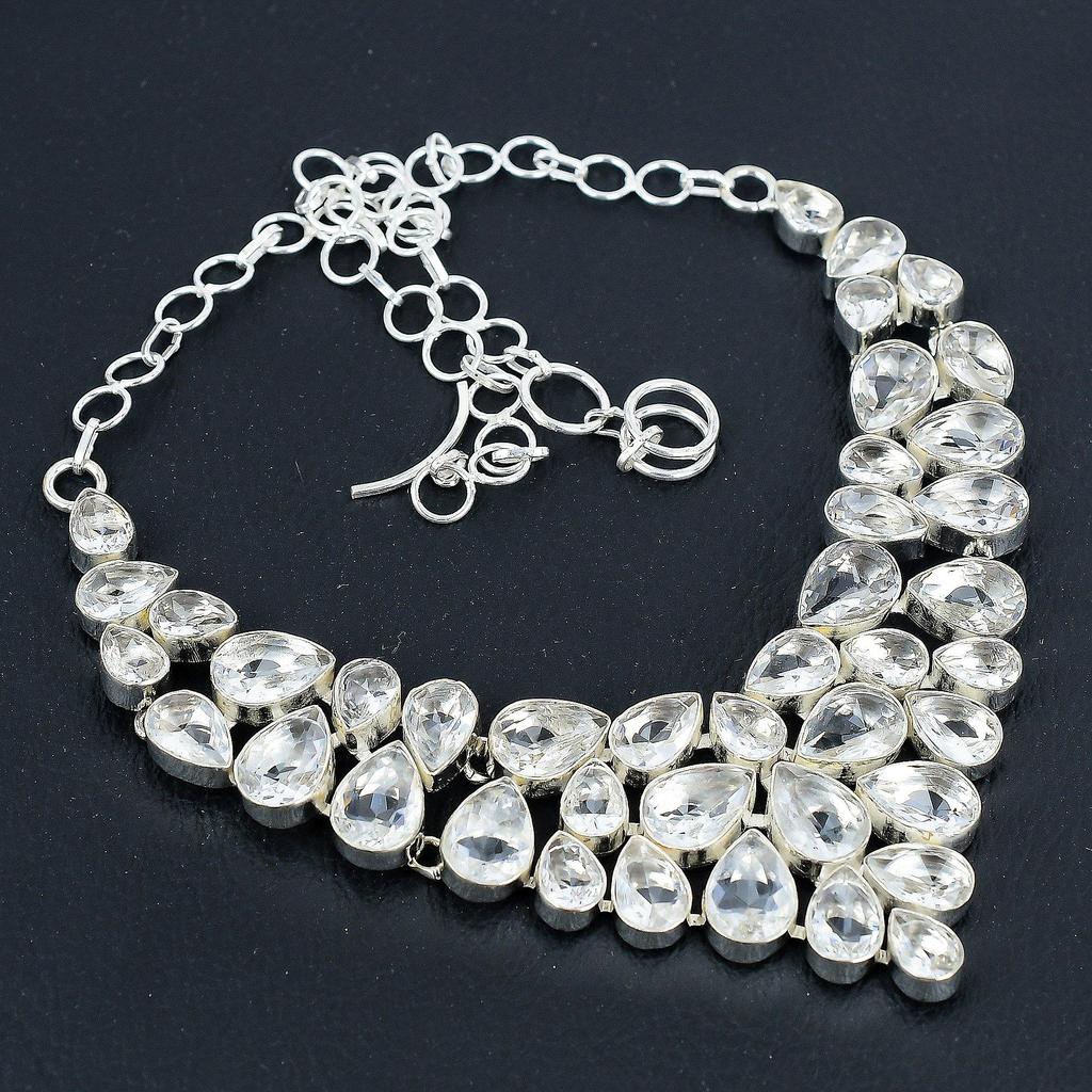 Dainty White Topaz Gemstone Handmade 925 Sterling Silver Necklace, White Topaz Silver Necklace For Wife, Unisex Necklace Mother's Day Gift