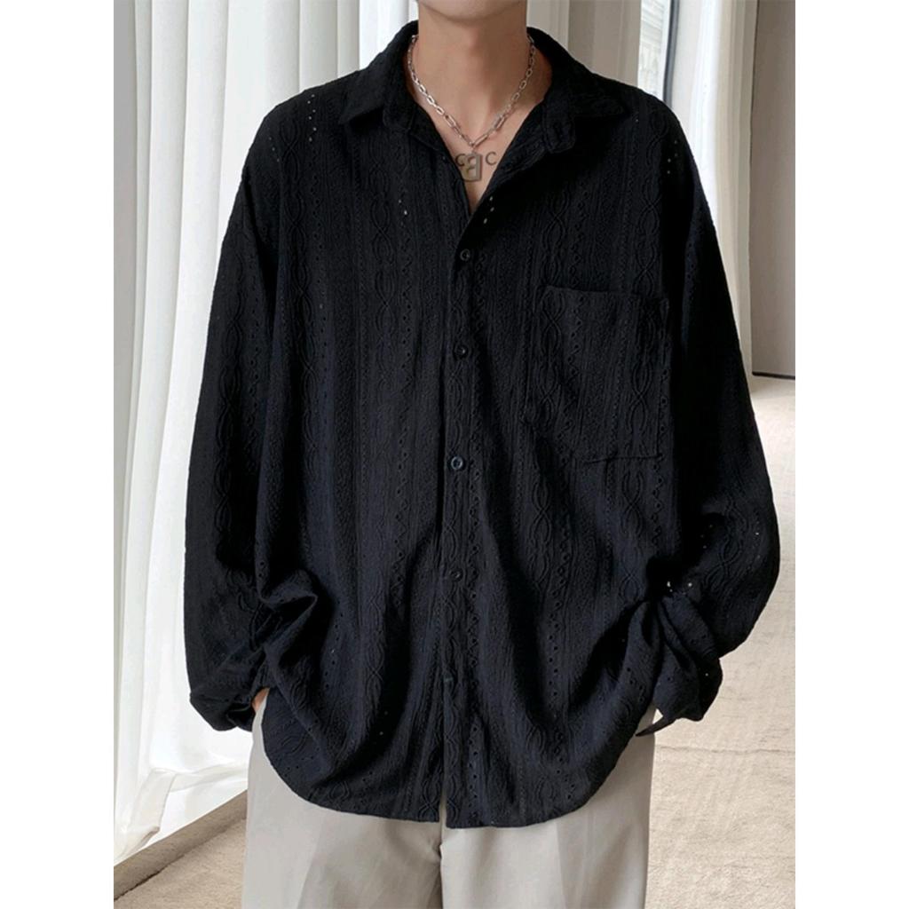 Niche Hollow Design Shirt Men's Ins Neutral Ruffian Handsome Loose Long-sleeved Shirt Jacket