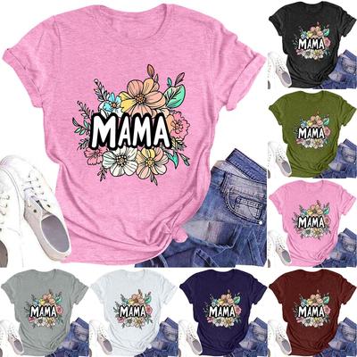 Women's Fashion Round Neck Short Sleeve T-Shirt Mother's Day Printed Casual Top