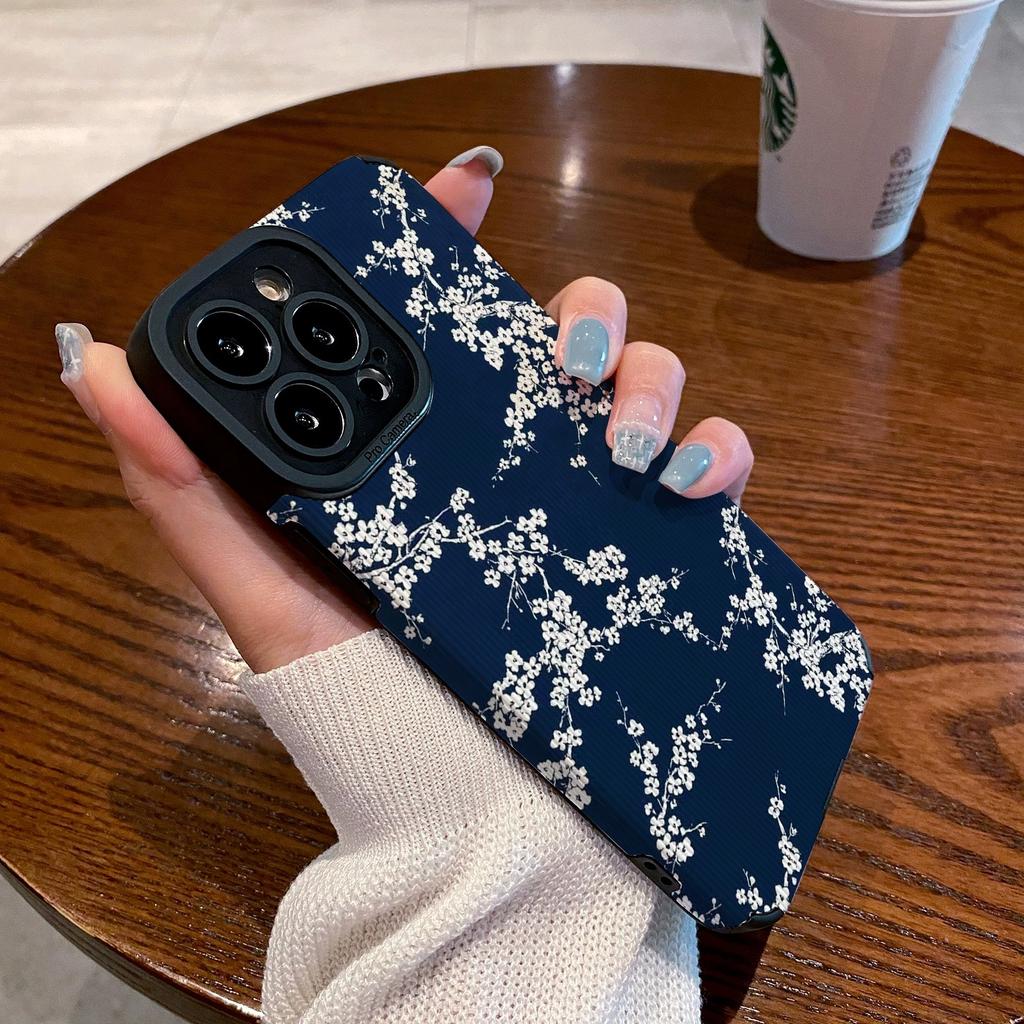 White Plum Blossom Silicone Leather Phone Case For iPhone 14 15 16 Pro Max 11 12 13 Mini Soft Shockproof Full Cover