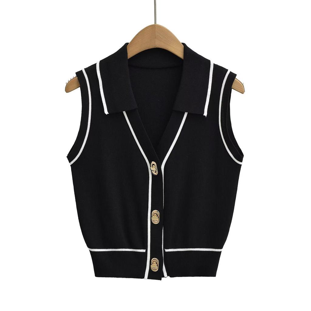 2024 European-American Slim Fit Sleeveless Button Sweater