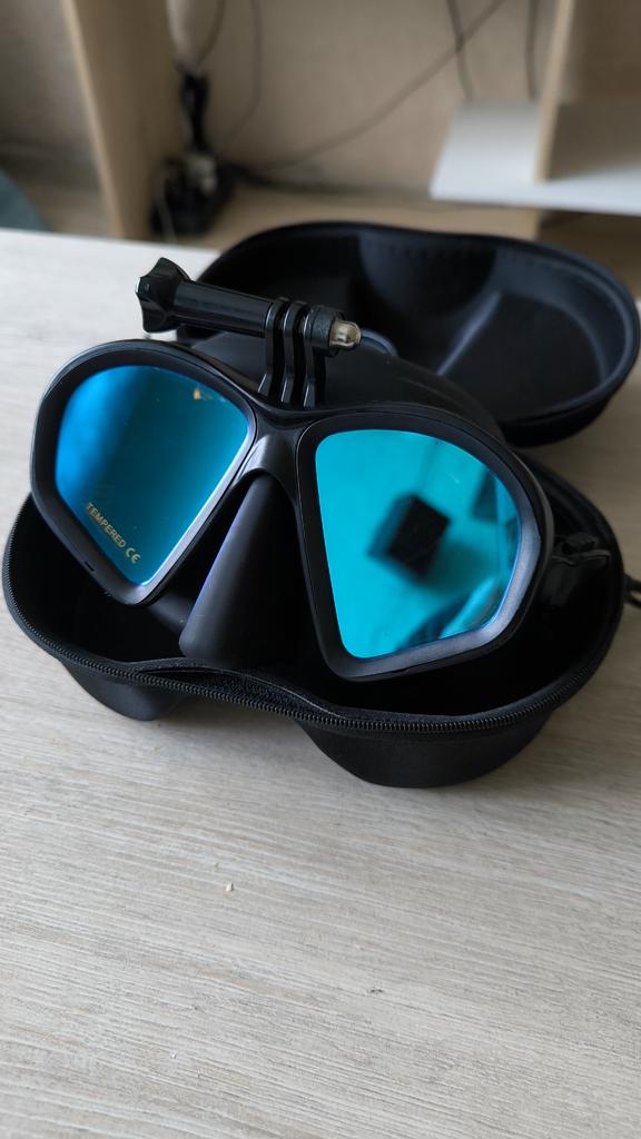 Freediving Mask Two-Window Tempered Glass Diving Mask - Waterproof, Anti-Fog, Electroplated Snorkel Mask with Camera Mount