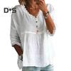 Elegant Lace Accents: Stand out with the exquisite lace detailing on the sleeves and collar, enhancing the overall charm of this V-neck shirt for a chic and feminine appeal.