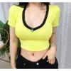 New Slim Short T-shirt for Women's Summer Top for Navel Exposed Short Sleeves High Waist Chicken Heart V-neck Slim Low Neck Student