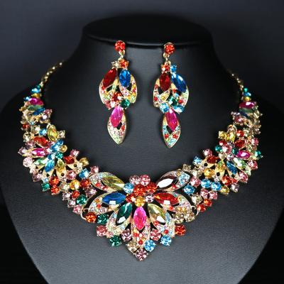 Vintage Colorful Jewelry Set: Exaggerated Necklace & Earring Charm for Evening Dress