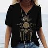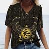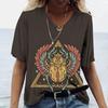 2023 Women's V-neck T-shirt Street Ancient Egyptian Ethnic Costume Print Women's Top Short Sleeve Casual Fashion Women Clothing