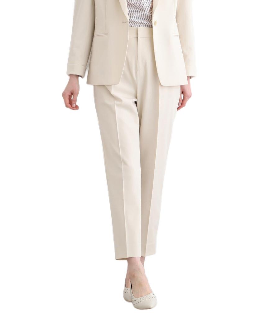 It has a slender line with a center press, so it looks neat and sharp and well-balanced even when worn alone with an oversized knit or blouse.