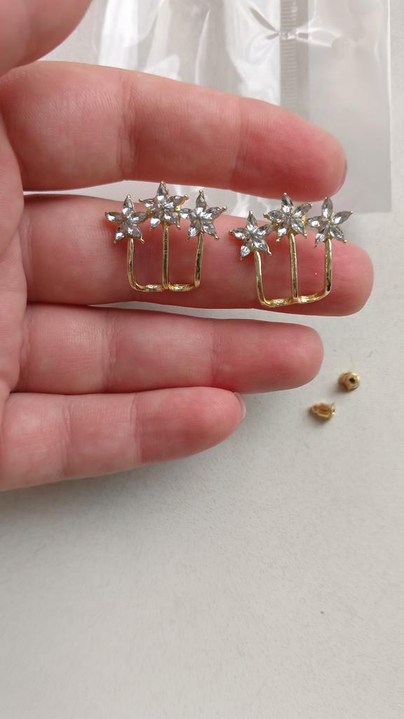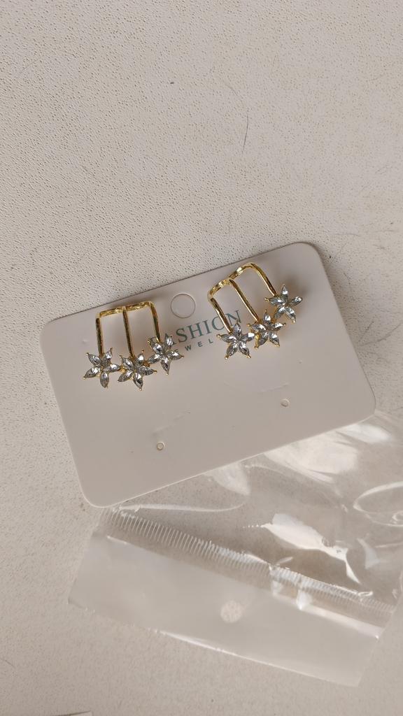 Earrings with flowers and stars are totally different from what you usually see, but they are very original and look very pretty on. They have a lock on the back to tighten and hold them to the ear. They come very well presented in a bag.