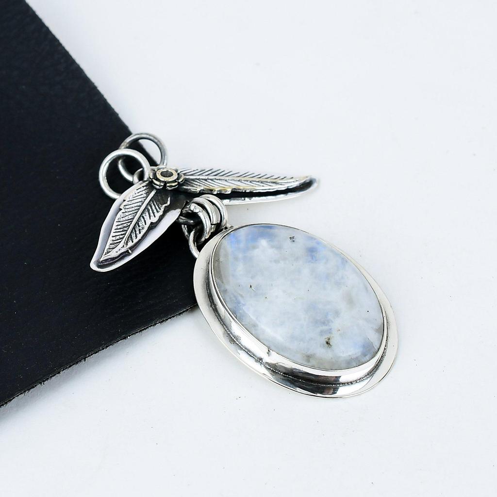 Natural Rainbow Moonstone Gemstone Silver Pendant In 925 Sterling Silver- Handmade Design, Everyday Wear Jewelry, Unique Pendant Gifts