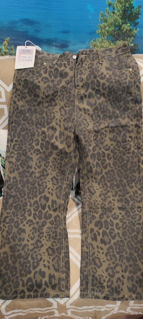 Retro Leopard Print Wide-Leg Jeans: Trendy Loose-Fit Hip-Hop Style