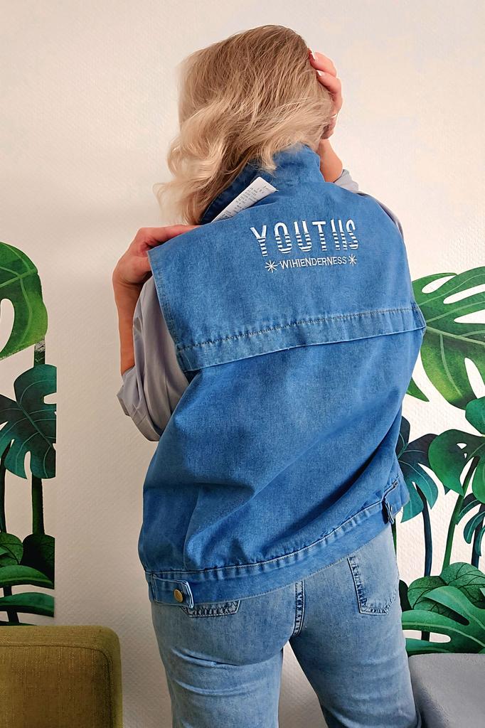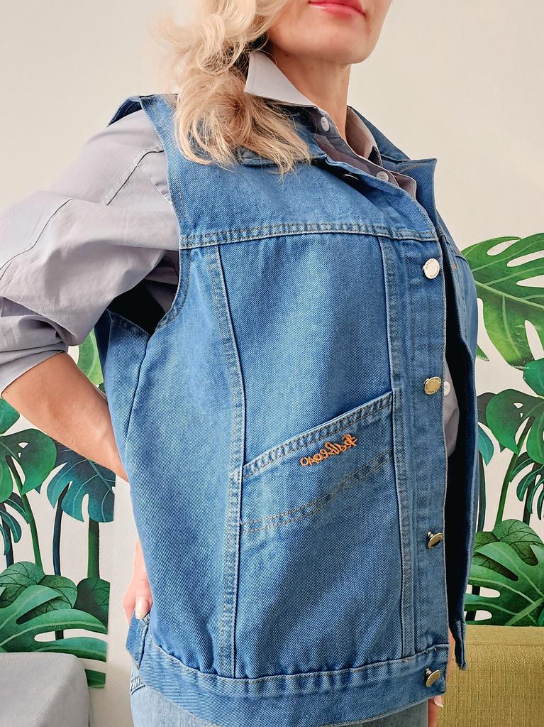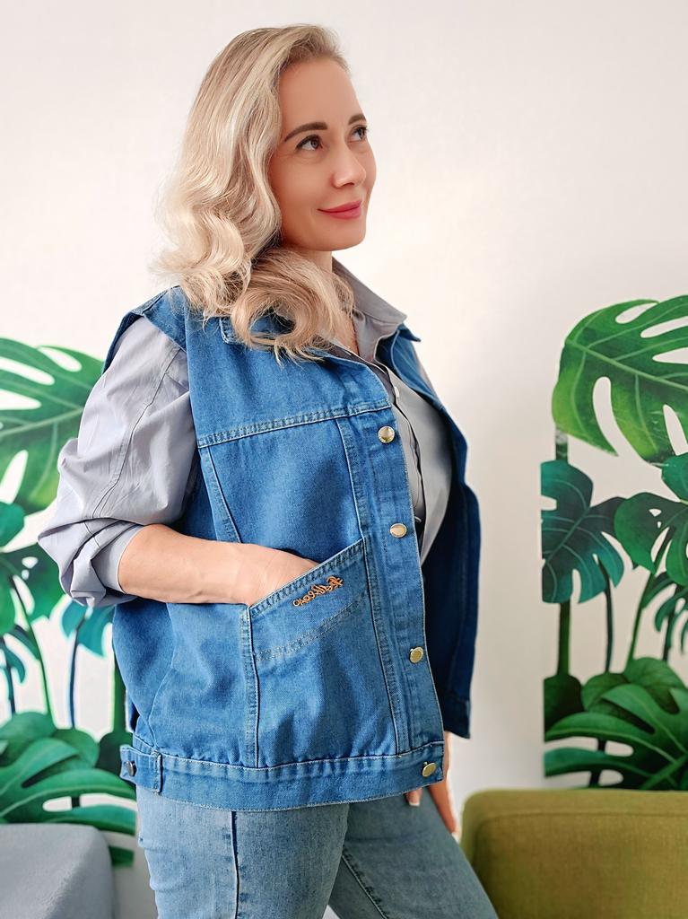 Fashionable Oversized Women's Denim Vest Cardigan Loose Fit Casual All-match with Pockets