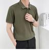 Men's Casual Retro Striped Polo Shirt: Short-Sleeved, Solid Color, Versatile Knitted Lapel T-Shirt