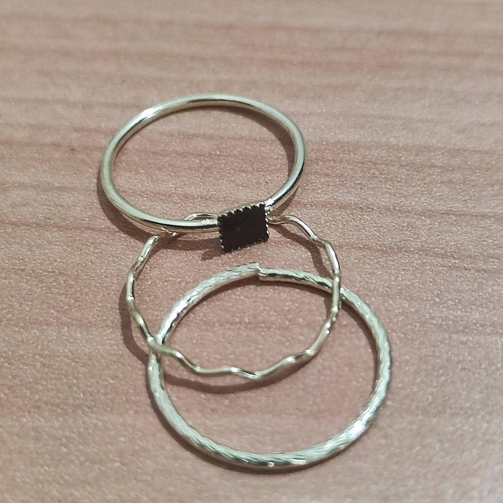 🛍️Set of 3 rings🛍️ Rating: ⭐⭐⭐⭐⭐ ✨This ring is very beautiful. They have a special and very beautiful shape and I really liked them.! ✨The ring is very beautiful for everyday wear, work events, and more.. and they add a lot to your look. ✨You can also use them to bring as a gift which is a great idea! ✨The ring is high quality and well made ✨The ring arrived to me in a safe and fast delivery. Highly recommended to buy!