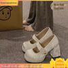 WD2025 Retro French-Style Thick-Heeled Mary Jane Leather Shoes for Women