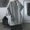 Men's Black Velvet Sweatshirt - Trendy, Loose-Fit, Round Neck for Spring/Autumn