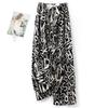 Cotton Silk Pajama Pants Female Summer Thin Section Anti-mosquito Wide Legged Pants Solid Color Outside Home Leisure Printing Nine-minute Beach Pants