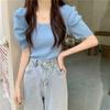 Bubble Sleeve French Square Neck Knitted Sweater for Women Spring and Summer Retro Slim Fit Half Sleeved White Short Sleeved Base Top