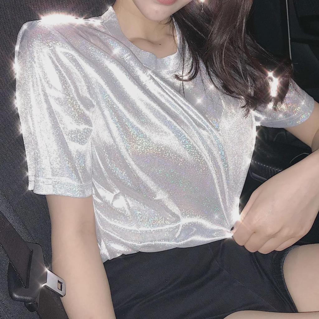 2020 Summer Shiny Silk Short-Sleeve BF T-Shirt Dress with Glitter