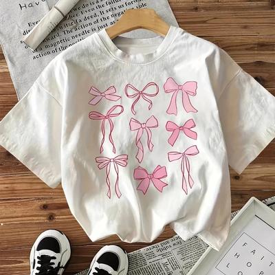 Pink Bow Print T-shirt Women Summer Style Casual Printed T Shirt Bo Short Sleeve Top Tee Kawaii Clothes Women Loose Clothing