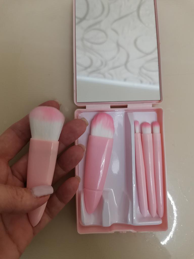 5pcs Set Travel Makeup Brush Set with Mirror Compact Powder Blush Eyeshadow Lip Brush Portable Multi Functional Cosmetic Beauty Tools