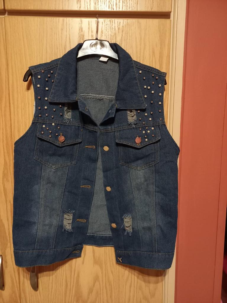 Women's Washed Ripped Denim Vest: Spring/Summer 2025 Beaded Sleeveless Jacket, Versatile Slim-Fit Top Trend