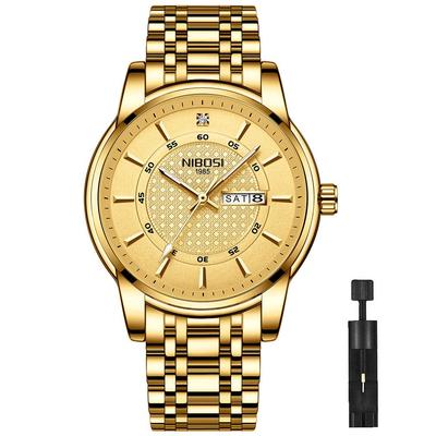 NIBOSI Watch Classic Gold Stainless Steel Business Arm Watch Waterproof Analog Stylish Metal Band Casual Present Date Day of the Week Watch