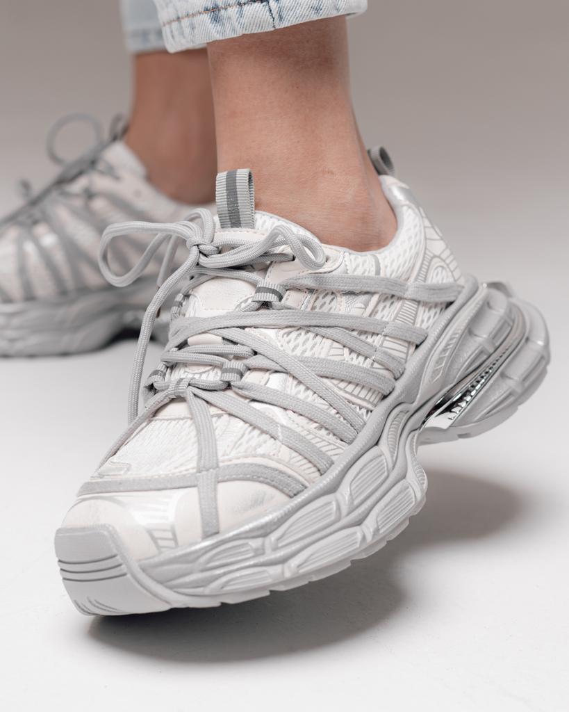 Allsy 19527 36 Platform Sneakers, Gray-milk, Leather, Textile