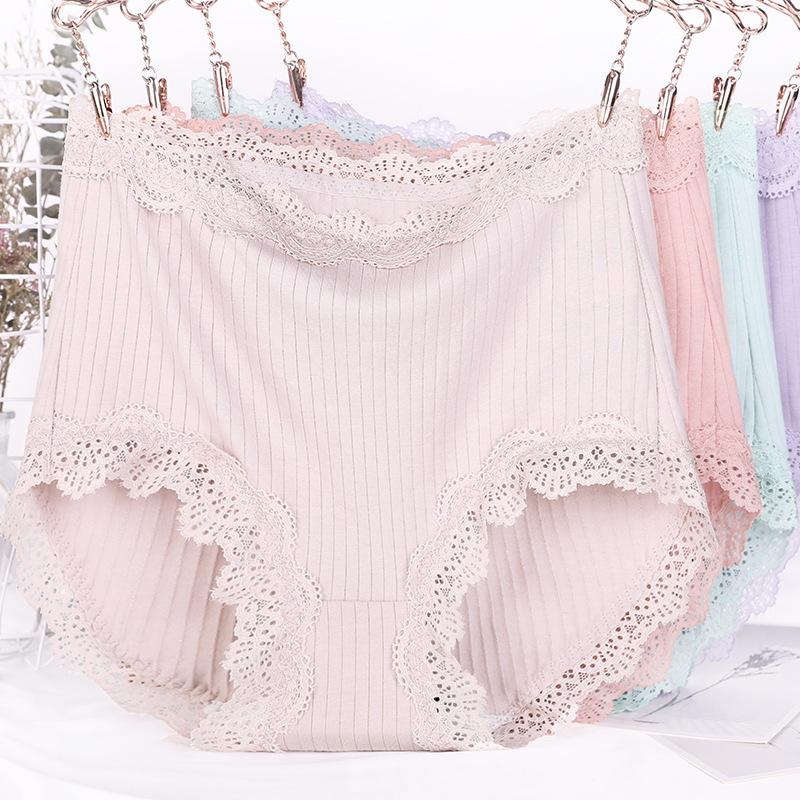 Women's Plus Size Solid Color Threaded Lace Lace Birth Year Big Red Triangle Panties