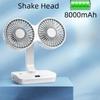 New Desktop Double Head Fan 4-Gears Wind Fast Cooling Digital Display 8000mAh Large Capacity Household Shaking Head Fan